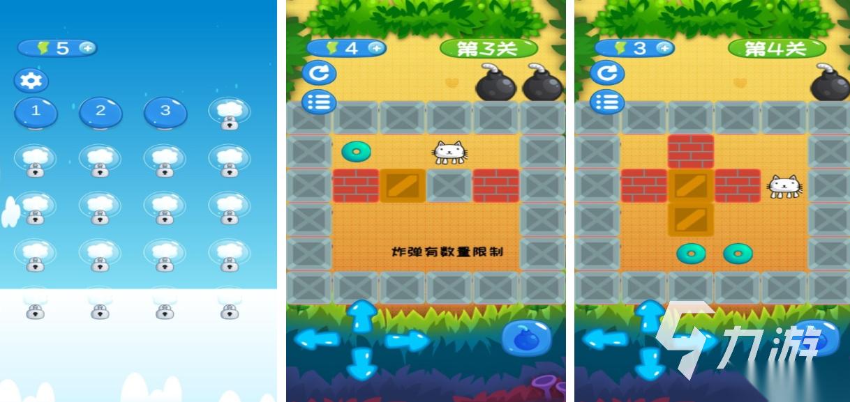 这款小猫咪主角的推箱子互动游戏闯关节奏还是很快的,玩家要尝试控制小猫猫推着箱子在地图上移动,快速将木箱放置在合适的位置就可以挑战更多关卡,游戏画风萌系十足而且操作设定方面精简无比,轻轻松松就可以让小猫咪推箱子执行完关卡任务,每一关的关卡地图都设定了很多的陷阱和障碍。