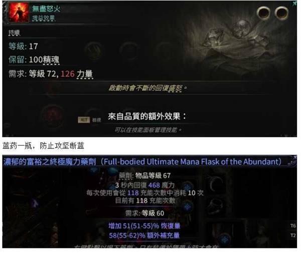 药剂:战士之血一瓶,让盛怒不消耗,设置鼠标宏7秒吃一次即可。