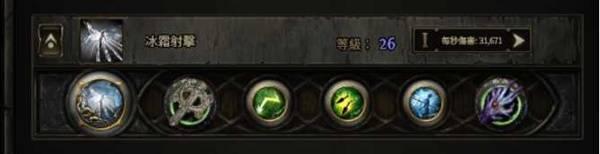冰霜射击搭配连锁技能可以连锁4次,每次击中敌人可以发射13个冰碎片,4次就是52个。
