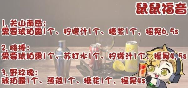 ③“野玫瑰”需要琥珀露1个、薄荷1个、糖浆1个,摇晃4s。