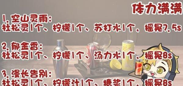 兔桑在研究饮品时还意外发现了三个能带来不错的体力效果的饮品,它们分别是“空山灵雨”、“郁金香”和“漫长告别”,这些饮品能让体力快速恢复,还能增加负重、大幅度提升体力属性(深蓝教官直呼:“力量回来了,不多但够用!”)。