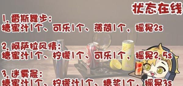 ②“阿萨拉风情”需要糖蜜汁1个、柠檬1个、可乐1个,摇晃2.5s;