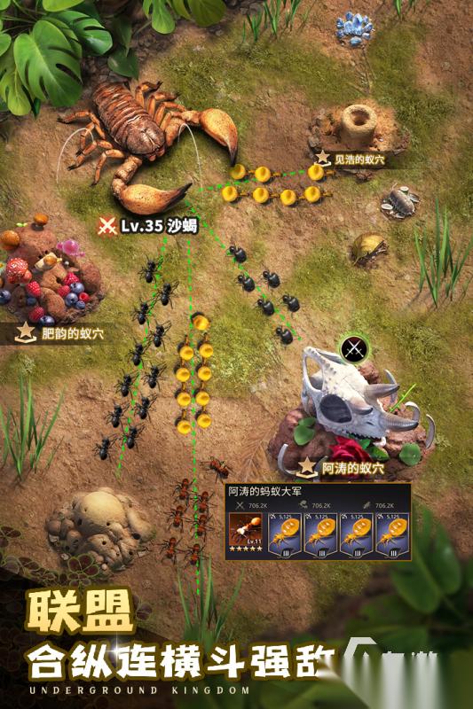小小蚂蚁也有自己的帝国之争。玩家是蚂蚁国的一员,要带领族群捍卫自己的土地,建立更大的疆域。蚂蚁将会面临蝎子,蜈蚣等土地霸主的欺压,想办法打败它们。发挥策略,攻防交替,3d写实模拟族群之战,深度感受小小蚂蚁的威力。不同总群有不同的生命值和特长,找到它们的弱点制定战术,多地图板块等待解锁,细腻的欧式画风,绘制出逼真的种群纠纷大战。