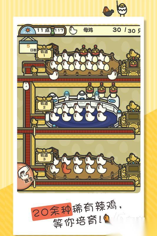 游戏设定可爱度爆表。这里被小鸡充满,而玩家作为鸡的主人,要培育它们。从供,养,栽培等各环节完成一套操作,深度体验养鸡计划。除了普通小鸡,还有合成进化设定,支持合成各类奇妙异想天开的特种鸡,超多图鉴等玩家逐一解锁。动漫式画风,简笔画线条勾勒出画面,简单魔性,满屏小鸡,搭配鸡叫音效,玩的过程让人忍俊不禁。