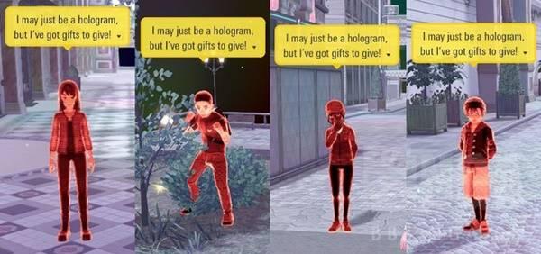 很容易认,因为他们是红色的全息影像。有男版和女版。