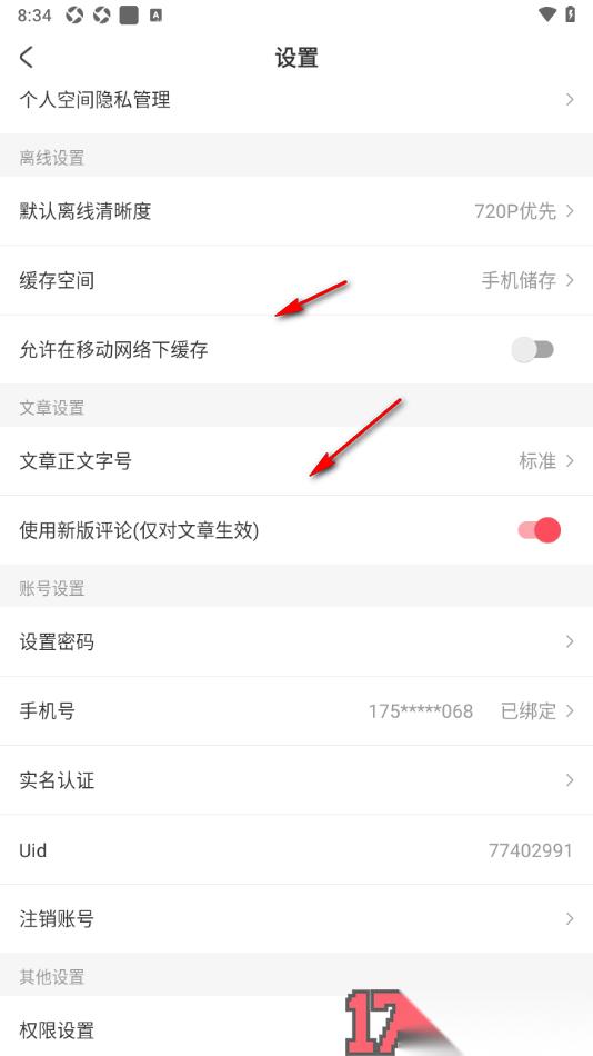 5.除此之外用户还可以根据自己的需求设置缓存空间、更改文章正文字号以及设置登录密码等内容。