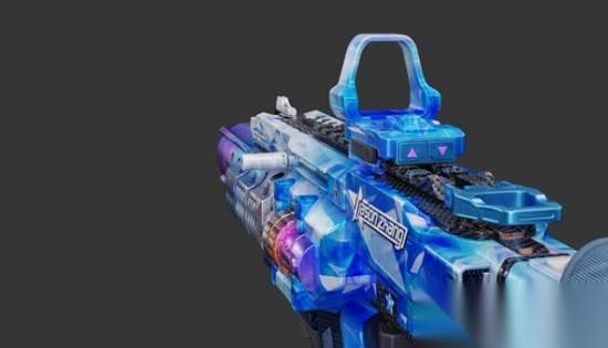 视觉够炫:枪身主体采用优雅的蓝白渐变色。在局内的高品质光影实机效果加持下,枪身能根据环境光线的强弱,折射出流动的星光。考虑到大哥们的战斗体验,我们特意在枪身中心区域(1P视角的视觉重心)采用了蓝白渐变晶石材质,确保大哥们在每一次推枪、换弹时,都能看到杰哥舞台标志性的颜色。