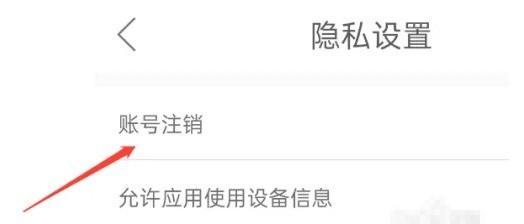 进入隐私设置菜单栏中,找到账号注销选项,点击进去。