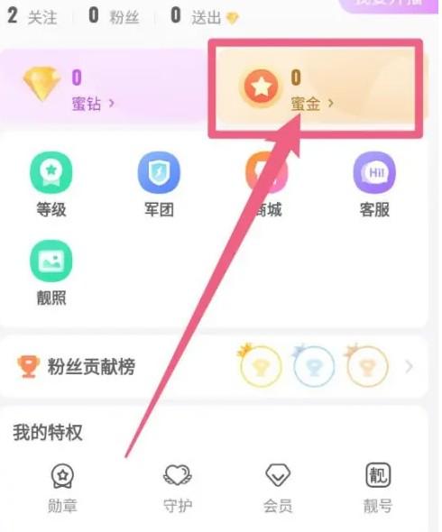 在蜜疯直播点击蜜金 ,如下图箭头所示