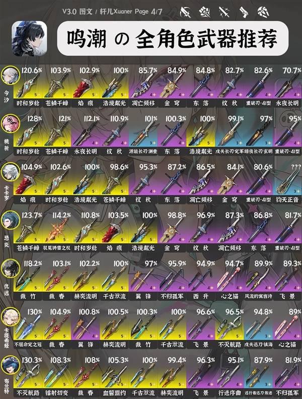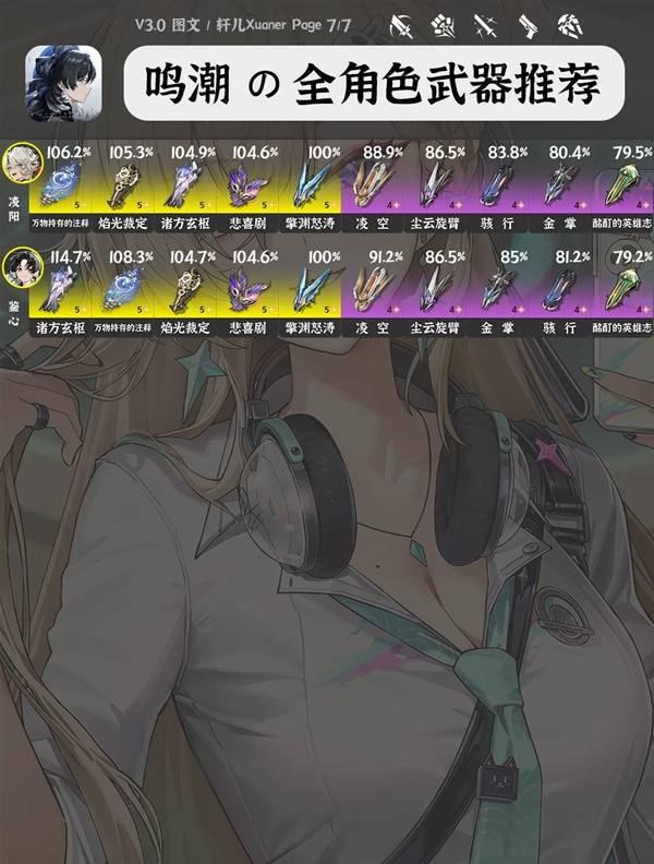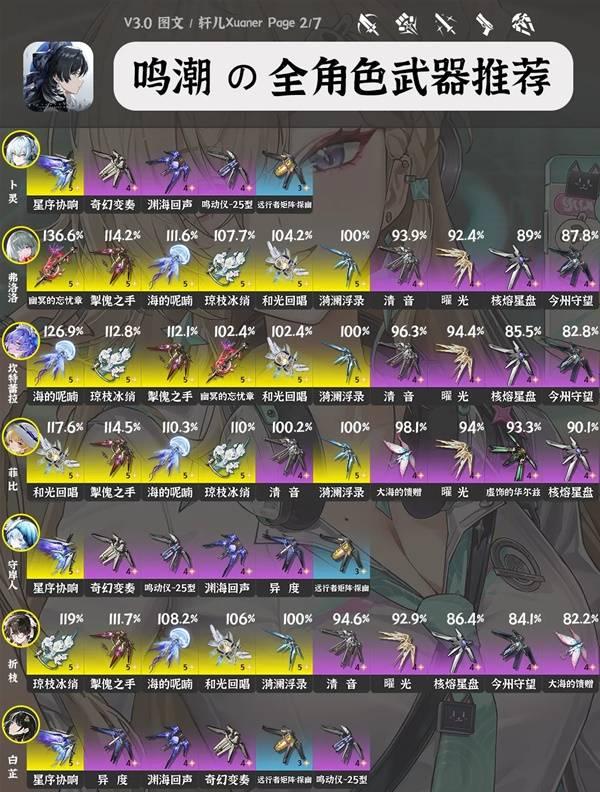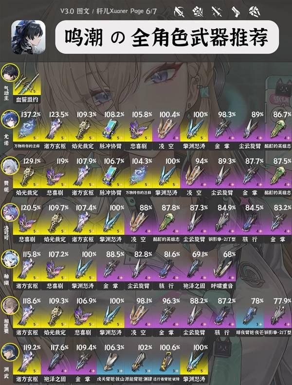 《鸣潮》3.0版本中每位角色要如何搭配武器呢?还不清楚的玩家下面请看由“轩儿Xuaner”为大家带来的《鸣潮》3.0全角色武器推荐,希望可以帮助到大家。