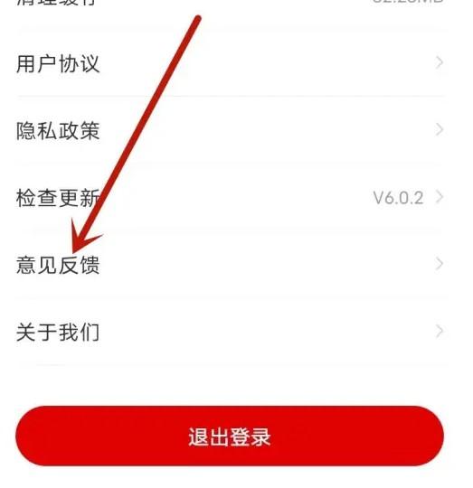 设置页面,点击选择意见反馈。