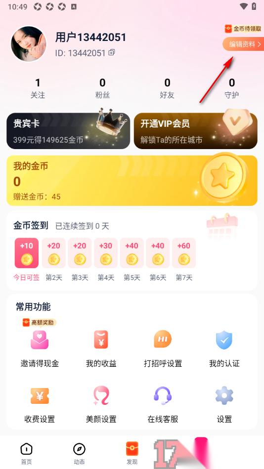 2.你可以在当前打开的页面上查看到上方显示的【编辑资料】选项,需要将其点击一下即可进入操作。