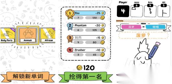 你画我猜的亲子升级版本,支持远程玩耍,或者是双人同屏玩耍。画笔工具齐全,主题也会涵盖多个内容,包括日常物品,英语词汇以及动物词汇,还有现实挑战,随时就可以激发大家的兴趣。背景音乐很舒服,孩子通过画画就能够练习抽象概括能力,家长在猜的时候,同样也可以引导孩子去表达。