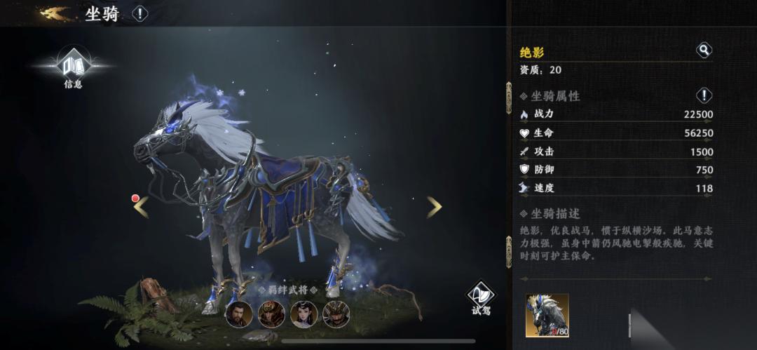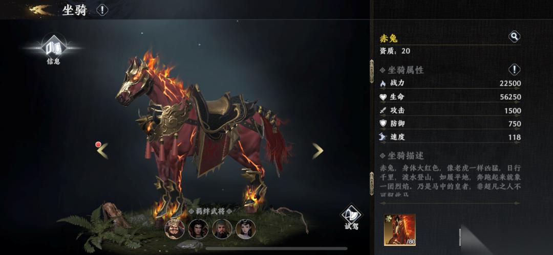 4、兑换商城:活动开启期间可使用神驹徽章兑换商城内的道具,限定兑换的次数仅对本次活动周期内生效;本次活动最值得兑换的那肯定是80碎片激活的绝影与80碎片激活的赤兔,都是20资质得存在,闯荡天下必备。