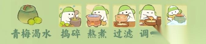 3、青梅渴水:捣碎、熬煮、过滤、调味、冷藏