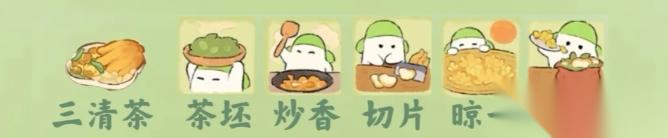 1、三清茶:茶坯、炒香、切片、晾干、混装
