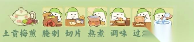 1、土贡梅煎:腌制、切片、熬煮、调味、过滤、冰镇