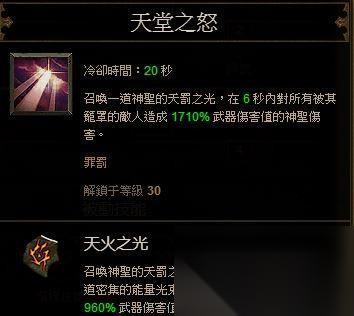 圣光审判是暗黑女圣教军的主要控制技能,可以减少敌人的攻击力和防御力,对于对付强力敌人非常有效,在技能加点时,应适当提升该技能的等级,以增加控制效果的持续时间。