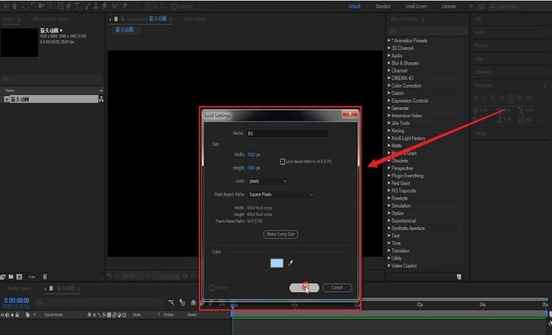 在合成中创建一个蓝色的固态层,作为背景(BG);