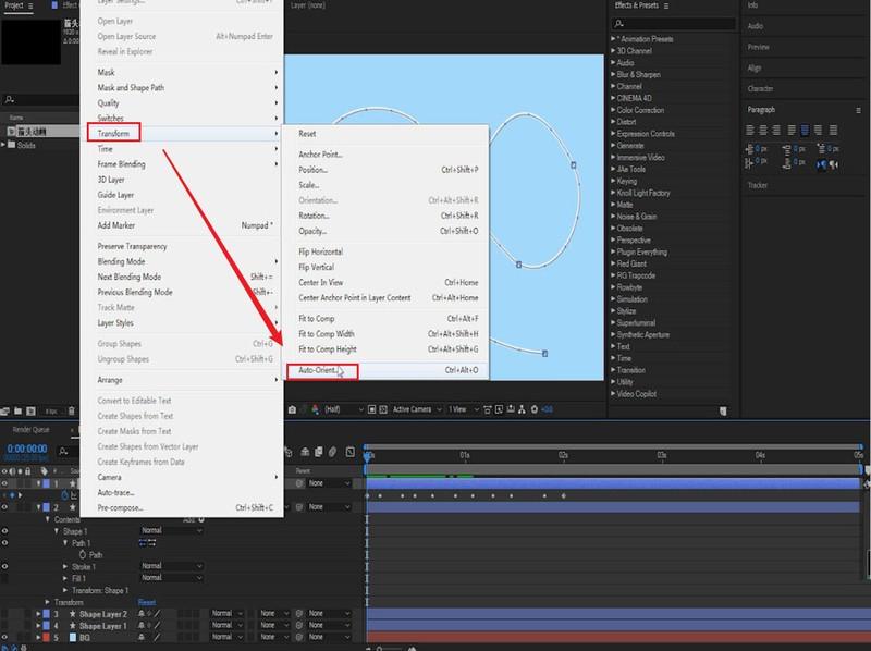在菜单栏中找到layer(层)菜单,找到transform(变换)→Auto-Oriental(自动定向),在弹出的窗口中选择Oriental Alone Path,点击OK;