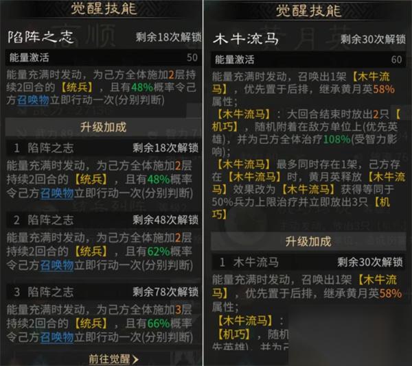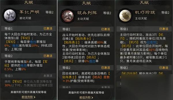 高顺发动天赋【统兵列阵】,为我方全体施加统兵(增加格挡率),进一步提高我方全体承伤能力,觉醒技能【陷阵之志】再为我方全体施加额外统兵层数,并有概率令己方召唤物立即行动一次,可以和黄月英觉醒技能【木牛流马】互相配合。