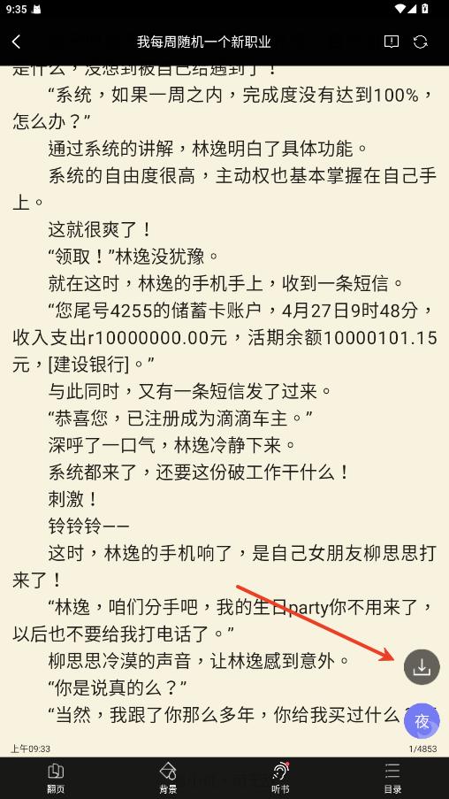 1.立即阅读一本小说,进入阅读界面。