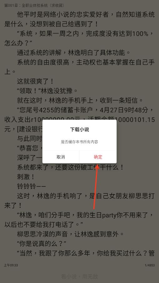 无敌小说app怎么下载书籍,用户在本站下载安装好软件,点击手机桌面图标,立即阅读一本小说,进入阅读界面,点击屏幕中间,打开菜单栏,点击右下角的下载按钮,缓存全本即确定。