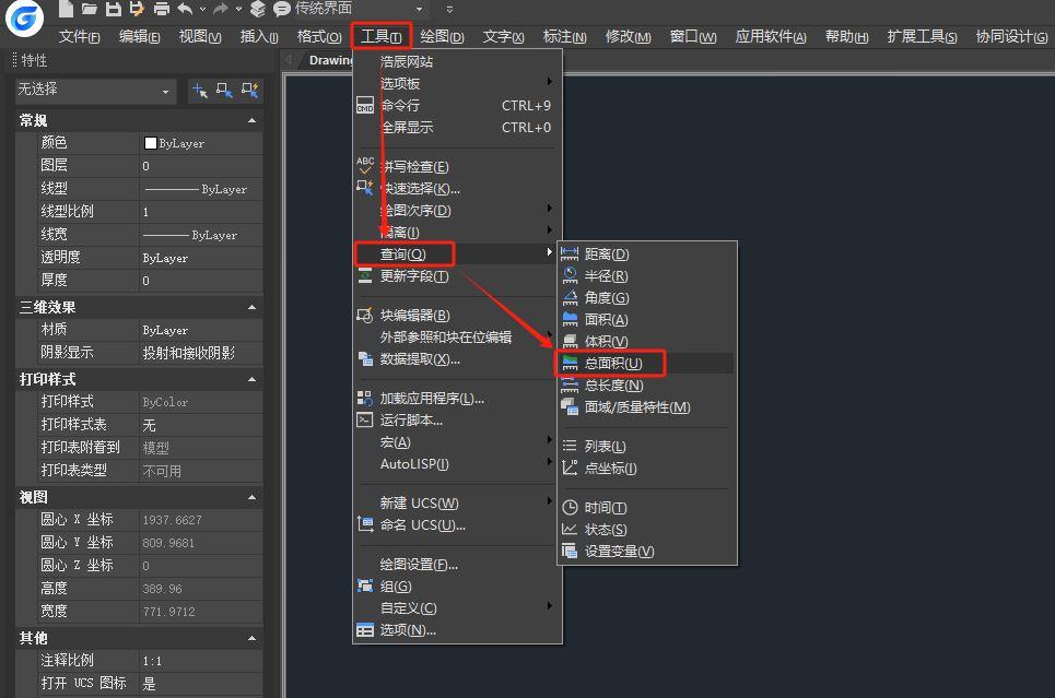 方法1:CAD查询总面积功能