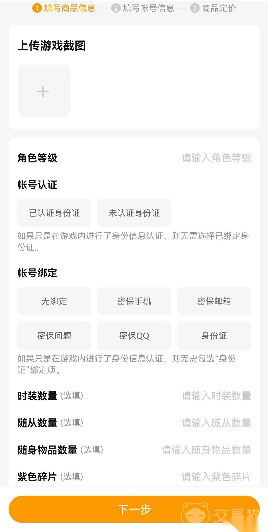 再来跟大家说说具体怎么在交易猫上卖号,步骤其实一点都不复杂,小伙伴们跟着走就行。登录账号后,直接点底部的“我要卖”,然后在游戏列表里找到火影忍者,选好自己账号对应的服区,注意千万别选错了,不然会影响买家找到大家的账号。之后大家跟着页面提示填信息,把账号的基础情况说清楚。这里要提醒大家一句,一定要多传几张高清截图,并且要把亮点、优势标出来,这样买家看着直观,也能感受到账号的价值,自然会有更多人愿意主动来咨询。