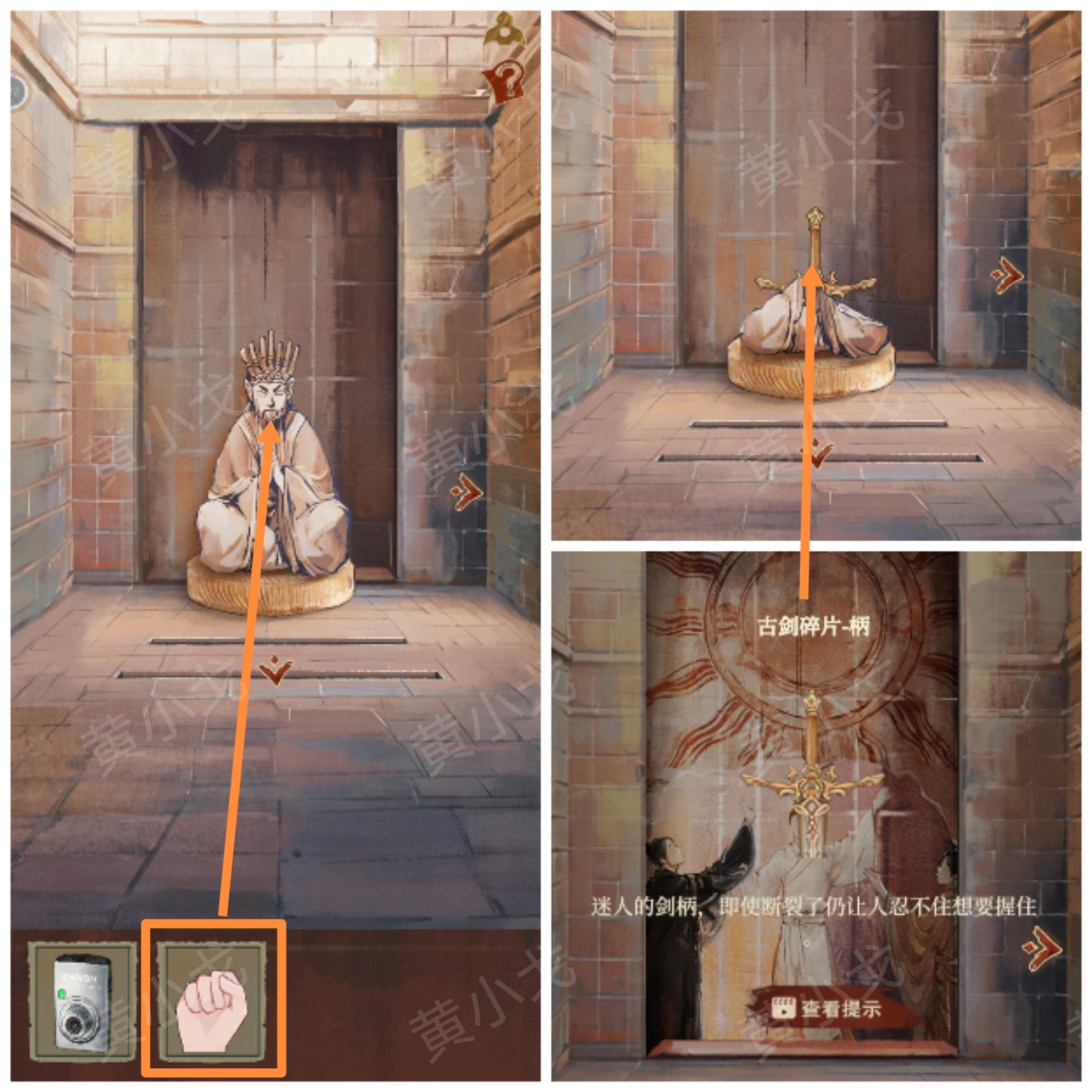 13.拿【石头】砸碎雕像;拾取【古剑碎片-柄】