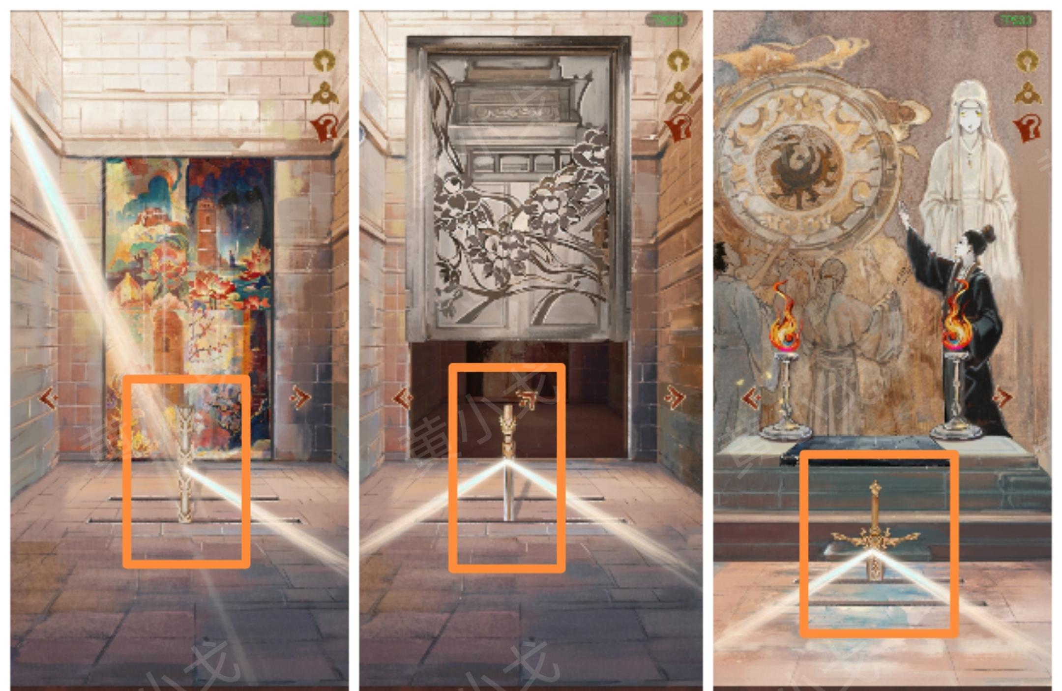 19.把【古剑碎片-柄】、【古剑碎片-刃】和【古剑碎片-神】放入正确的位置上,使玉镜的光反射到下一个场景中