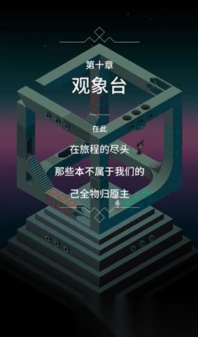 第十关观象台的过关核心在于理解并熟练操作场景中的多层旋转机关,通过不断调整视角和路径连接,引导角色艾达依次进入不同的门并触发关键机关。玩家需要在一个主体结构上,通过滑动或旋转带有圆钮的方块来改变道路的走向,使艾达能够从建筑外侧步入内侧,并环绕行进至红色的旋转方块处,进而踏入第一扇门,开启后续的探索旅程。进入新的场景后,解谜的重点转移至一座紫色的多层建筑上,玩家需要持续旋转该建筑结构,为艾达搭建通往上一层的道路。