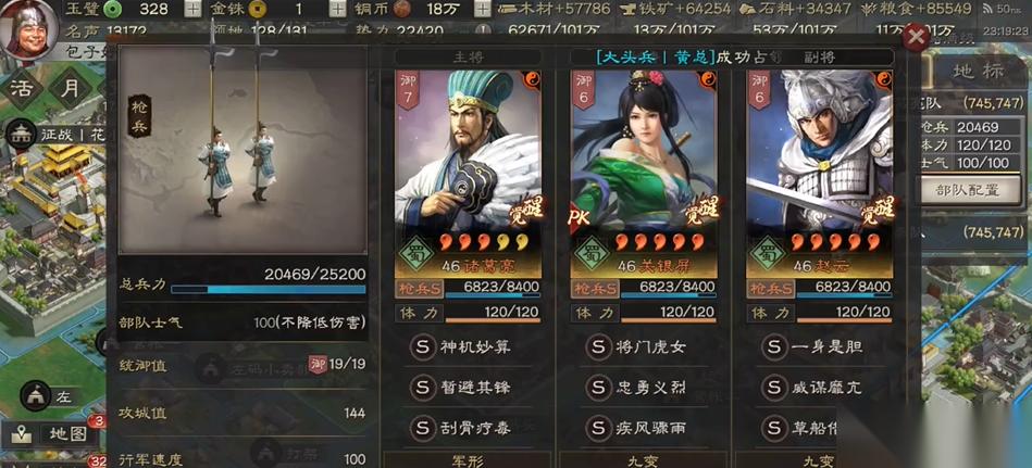 第一枪阵容通常以诸葛亮作为主将,这能充分发挥其主将技神算的威力,对敌军主动战法形成强大的震慑。赵云作为副将,由于其自带战法提供洞察状态,几乎免疫所有控制,可以作为稳定的输出核心。第三个位置的选择则有灵活性,常见的是搭配张飞,利用其高额的武力输出和燕人咆哮的稳定伤害补足队伍爆发。