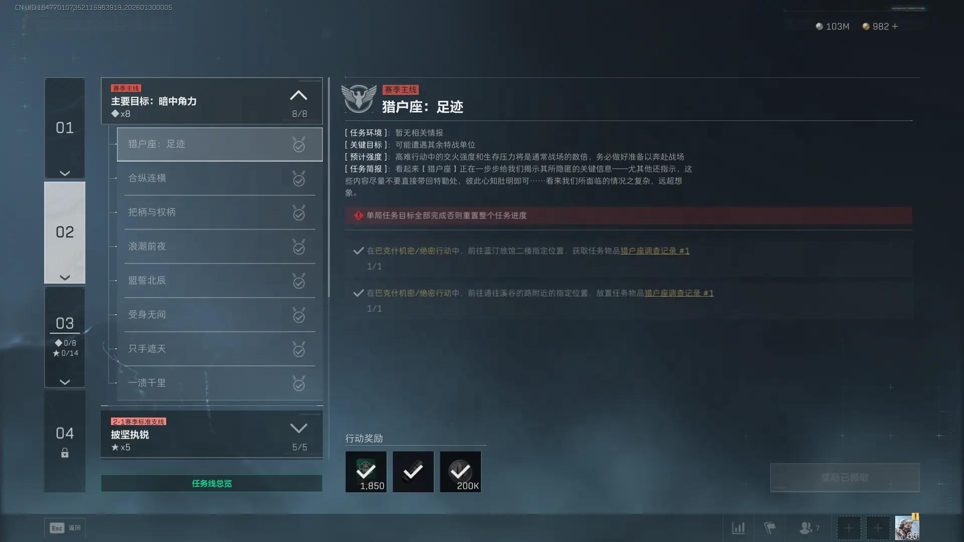 在巴克什机密/绝密行动中,前往蓝汀旅馆二楼指定位置,获取任务物品【猎户座调查记录 #1】。