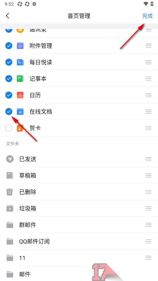 qq邮箱手机版设置首页展示在线文档的方法