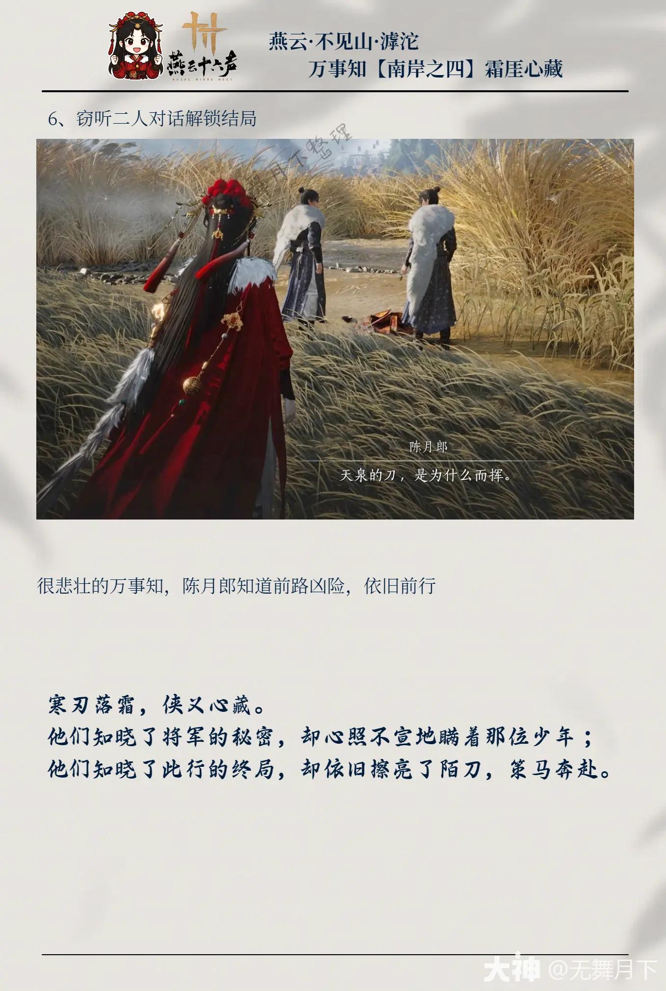 燕云十六声是一款开放世界游戏,玩家可以扮演年轻的侠客在世界游玩,在游戏中有许多的任务挑战,那么有不少小伙伴好奇霜厓心藏万事知任务怎么做,下面就个大家带来霜厓心藏万事知任务攻略。