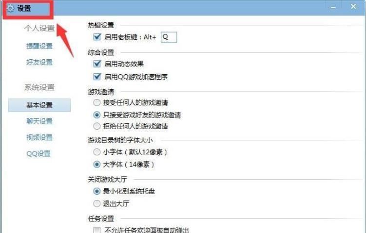 1、在QQ游戏大厅右上角找到QQ设置,然后再点系统设置;