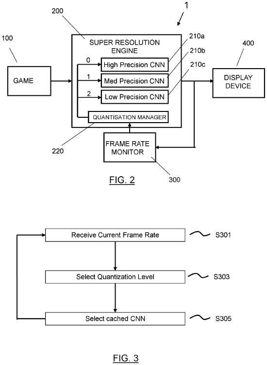 这项名为“图形处理”(GRAPHICS PROCESSING)的专利指出,开发者无需再为提升缩放技术性能而降低游戏内部分辨率。当显卡负载激增时,实时量化技术只需降低CNN权重精度即可。通过动态减轻人工智能工作负载,游戏可以实现更高的内部分辨率和更稳定的帧率。
