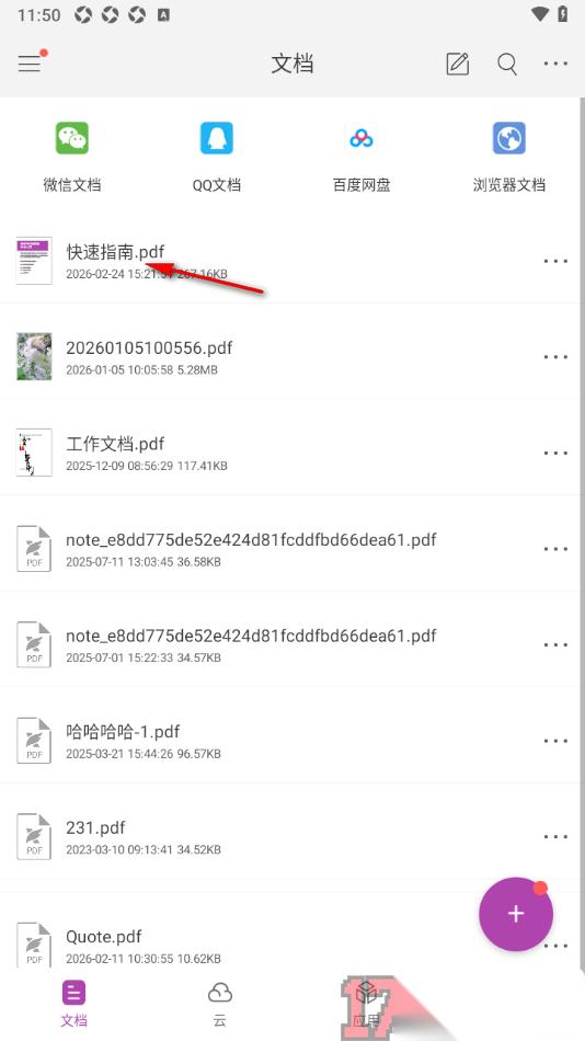 1.当我们将手机上的福昕PDF编辑器app点击打开之后,在首页面上选择自己想要的PDF文档点击打开即可进入。