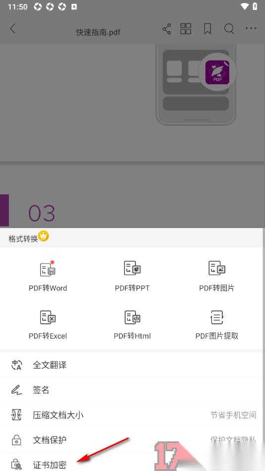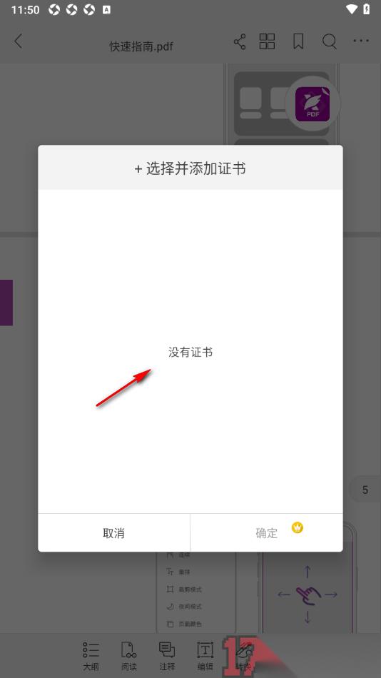 在手机上用户可以安装福昕PDF编辑器app这款软件来使用,在该应用中提供的PDF文档编辑功能非常齐全,其中还能在文档中插入签名、证书等,若是不喜欢稳当中的证书信息直观的显示出来,可以设置一下对证书加密,从而会限制其他人查看证书的权限。