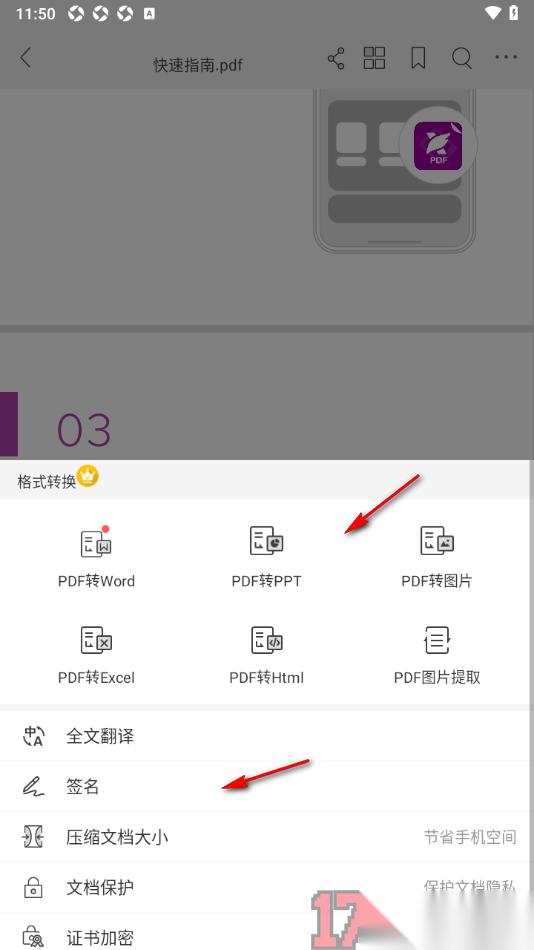 5.返回到上一步用户可以在文档中加入签名信息、进行文档大小压缩设置以及进行全文翻译操作等,如图所示。
