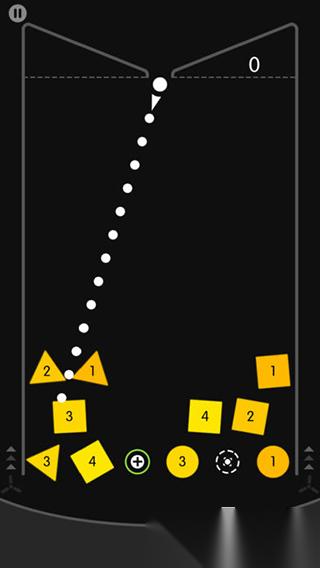 采用了物理反弹的机制,在操控屏幕进行弹球发射时方向和角度的选择显得更为重要,每一次在撞击到带有数字的方块时,都会获得相应的分数。当屏幕上方所有的方块全都被击碎时才可以通关成功。弹球在发射后,它的运动轨迹会发生变化,在闯关时增加了弹球的难度,有些任务当中还设置了时间模式。