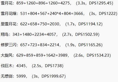 测试结果无想剑明显领先。而伐巨木+大旋风组合表现不佳——这个结果比较意外,可能是操作熟练度的影响,但也可能是大锤的冬月拖累了输出。