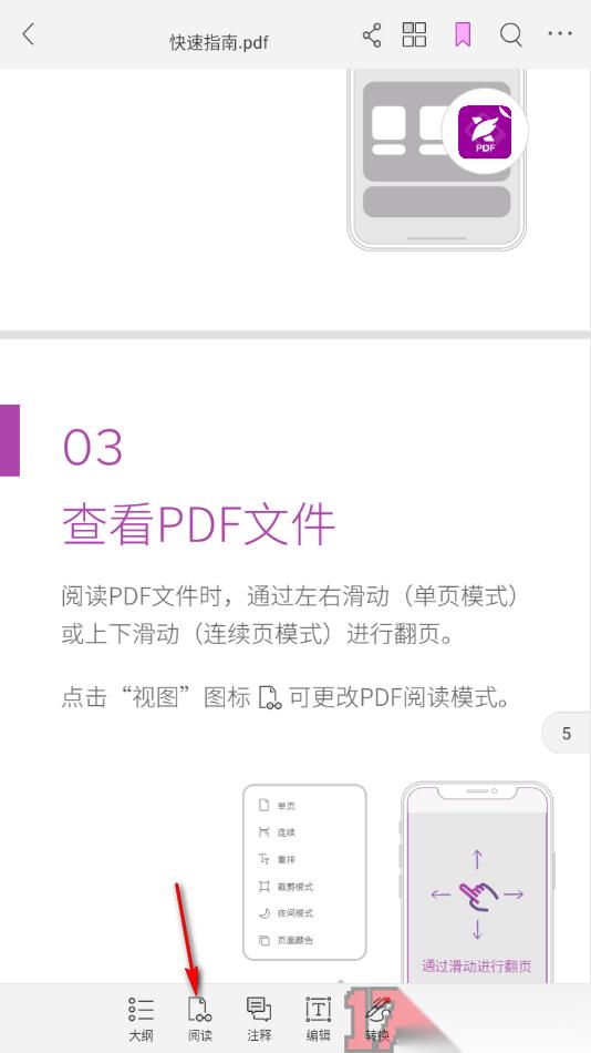 2.随后在打开的页面上会查看到底部显示的工具栏选项,将其中的【阅读】选项点击打开即可进入到操作界面中。