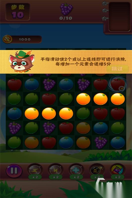 游戏的玩法便是将屏幕中出现的水果元素进行连接,清新明亮的感觉可以从这里为玩家们获得更多的快乐,还会有着舒缓的音乐和音效,为玩家们的挑战带来了诸多的趣味所在,《天天水果消消乐》这款手游的画质较为清晰,特殊的水果本身也会提供一系列的额外效果,帮助玩家们快速的闯关哦。