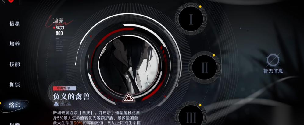 提到迪蒙的专属烙印 “负义的禽兽”,效果确实诱人 —— 它能进一步强化护盾生成和团队保护。不过,重点来了:一旦迪蒙移动,这个效果就立刻消失!在当前一些高难度副本环境中,纯坦克硬抗的需求有时会有所波动。因此,对于资源本就捉襟见肘的萌新局长来说,解锁专烙的优先级可以适当放后。前期最关键的是把这三大核心夯实:角色等级、技能等级、普通烙印系统的合理搭配。先把这几块硬骨头啃下,迪蒙的战斗力才能迅速成型。有了这位攻防兼备的硬核坦克,你队伍的稳定性绝对上一个新台阶!