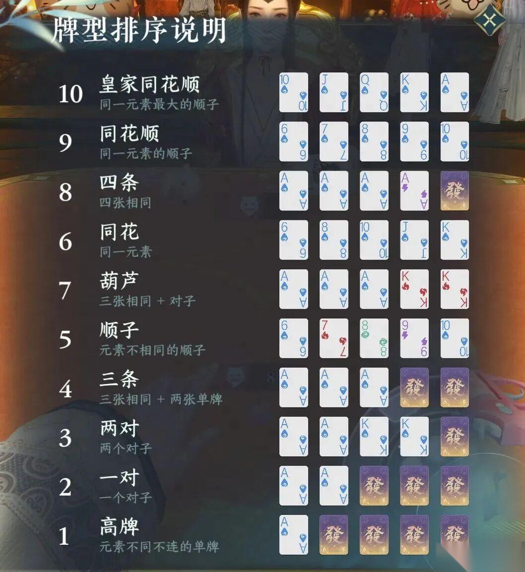 二、大小瞒愚人牌屋上线新玩法【大小瞒】,就是德州扑克,比炸金花更复杂一点,整理了该玩法规则,让宝子们快速上手:所有玩家将两张“不公开底牌”和五张“公共牌”组合,用最大牌来比大小,下图为牌的大小顺序,每开一张“公共牌”(五张“公共牌”分三批翻开,第一批翻三张,后面每批翻一张),玩家可以选择“下注”(猪猪弹)或者选择“放弃”,最后根据自己手中的底牌和公共牌进行组合,牌大的胜利,主要考验心里博弈