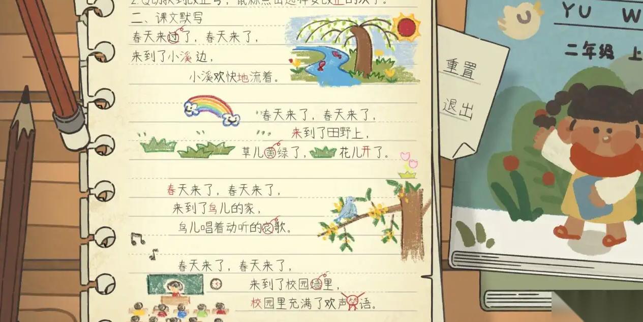 主线“语文作业”解锁,在广场与妙妙对话后完成小游戏
