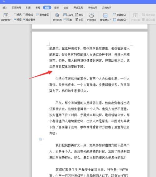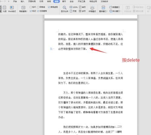 第四步:此时看到显示已经正常,如果有分页符的话,只需要在文字末尾点击delete,然后就可以完成取消左右分页(如图所示)。