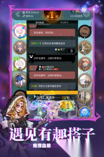 游戏打造了趣味横生的狼人杀玩法,推动了玩家间的互动性,大家会被随机匹配到截然不同的身份,狼人、盗匪等要伪装自己,逃脱票决风险,警察、平民等则要揪出并票决狼人,彼此能展开一场智谋的精彩角逐。游戏为方便广大玩家的沟通,设有语音功能。游戏堪称交友天堂,你会结交到志趣相投的真人玩家。